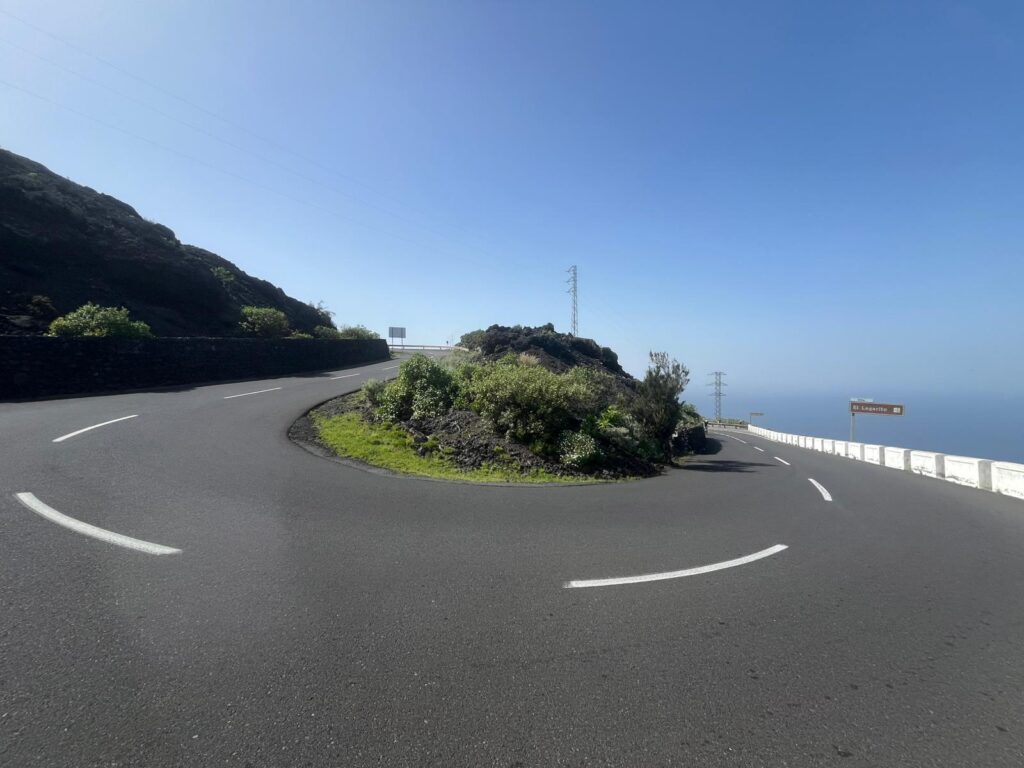 Nach 35 km Bergauffahrt erreicht man die so genannte Caldera, eine Mondlandschaft inmitten des ehemaligen Kraters, neben der sich die noch leicht verschneite Spitze des Teides erhebt. Nach weiteren 10 km geht es dann aus 2100 Metern Höhe auf eine 40 km lange Abfahrt, die in langen Serpentinen in nahezu perfekter Linie fast bis ans Meer führt. Das gibt es so nur ganz selten.
